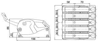 Közepes-nagyobb teherbírású stopper, műanyag burkolat, alumínium kar.